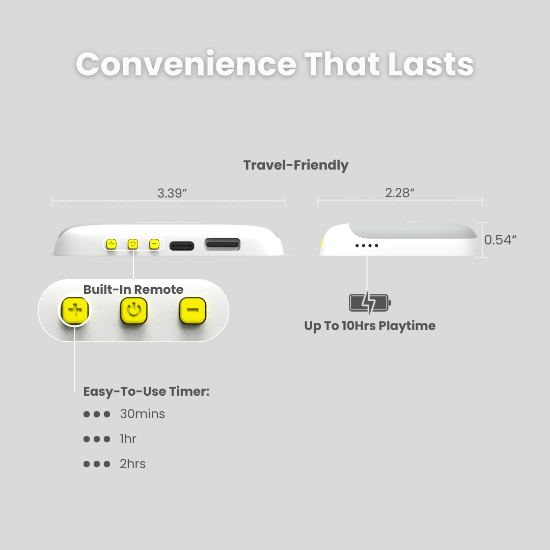 - Ultra-Thin Design: At only 0.54 inches thick, the speaker fits comfortably under your pillow for maximum convenience.